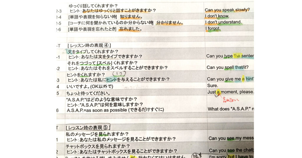 こういった疑問文もセルフトレーニングシートで